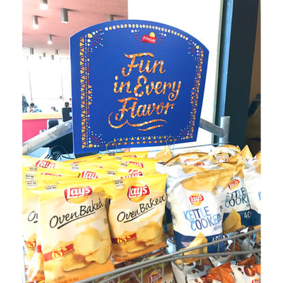 We partnered with The Marketing Arm to create some food lettering point-of-sale designs for Frito-Lay. The scale of this one was so large, we had to create it on the floor. We were charged with using crackers, pretzels, popcorn, and chips, chips, and more chips. We loved making the patterns and border decorations as well as the flavorful lettering. We ate so, so many Doritos, Sun Chips, and Cheetos that we can attest there truly is fun in every flavor.